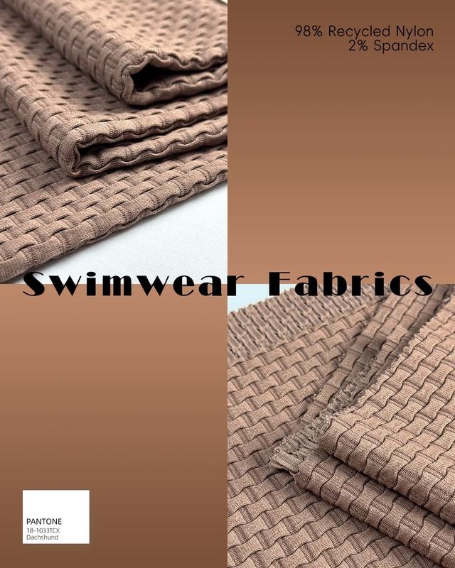Elke week ontwikkelen we meer dan 10 verschillende texturen en tonen deze aan onze bestaande klanten, en we hanteren KLEINE MOQ, MCQ en verschillende prints, kleuren voor huidige badkledingstoffen.